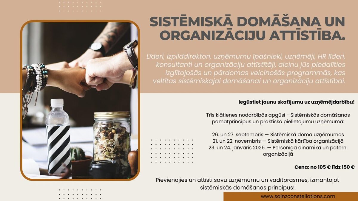 Šajā sadaļā ir pieejamas sistēmisko sakārtojumu programmas, kas ir paredzētas uzņēmumiem un to saistītajiem darbiniekiem, vadītājiem un īpašniekiem. Uzziniet, kā efektīvi organizēt un uzlabot uzņēmuma darbību, izmantojot īpaši izstrādātas programmas un risinājumus, kas veicina komandas iespēju pilnvērtīgi sadarboties un sasniegt kopējus mērķus.